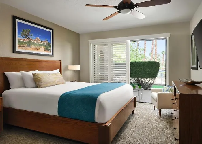 Hotel Hyatt Vacation Club At Desert Oasis Cathedral City oferuje jacuzzi i saunę około 5 km od lotniska Palm Springs International. Children’s Discovery Museum of the Desert jest w 6 km, a Centrum handlowe Canyon Plaza jest 2 km od tego hotelu.
